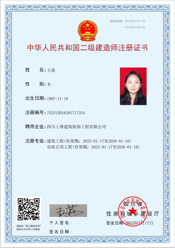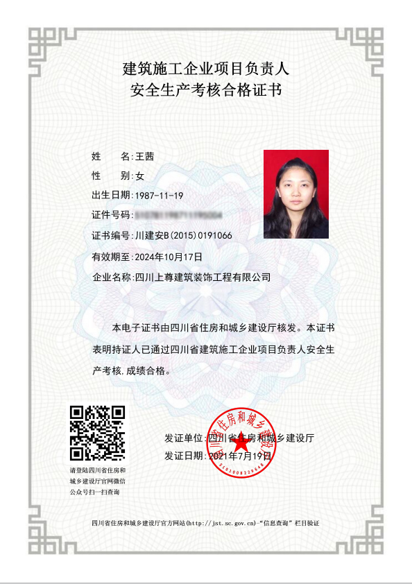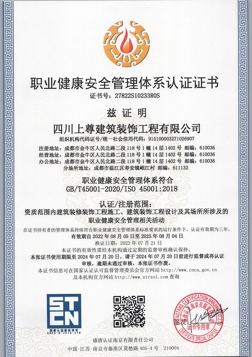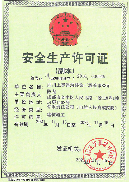 四川上尊建筑裝飾工程有限公司(原呈上設計事務所),成立于2015年,現員工200余人(中高級職稱30人),主營市政建筑工程、路橋工程、建筑裝飾裝修工程、裝飾設計、機電安裝工程和園林綠化工程;公司于2014年投入2000萬購買金牛萬達廣場甲級寫字樓C座1500平米用于辦公場所,注冊資金5000萬,公司是成都市建筑裝飾協會常務理事單位,并獲得四川省住建廳頒發的建筑裝修裝飾工程專業承包壹級資質和建筑裝飾工程設計專項乙級資質;2015年榮獲四川省“消費者口碑點贊企業”稱號,2016年加入四川省川聯企業商務促進會理事單位,2017年榮獲“四川省愛心企業”稱號,2018年榮獲“四川匠心成就企業”稱號,2019年榮獲“最具影響力企業”稱號,2021年榮獲“公益愛心企業”,2023年獲得“時代影響力企業”稱號。